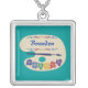 Colorful, customizable Artists Palette Name Pendant Necklace. This design has an artist’s palette and brush, and the word "artist" is made to look like colorful paint splats. You can personalize the artists name in our easy to use template. For further modifications on this name pendant, such as to change the background or text color, go to customize.