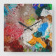 Bring artistic flair to your space with this unique square wall clock featuring a vibrant painter’s palette design. Perfect for studios, creative corners, or art lovers' homes, this clock combines functionality with inspiration. The colorful swirls of paint and water bubbles are a bold statement piece that celebrates creativity. Whether you're timing brush strokes or just keeping track of your day, this clock adds a splash of imagination to any wall.