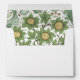 This beautifully crafted wedding envelope set is a nod to the Arts and Crafts movement with its detailed floral print lining. The set includes a main envelope adorned with a tasteful and elegant return address in a classic font on the flap, paired with a stunning interior liner that showcases a vibrant pattern of green foliage and golden flowers. The combination of the clean, white exterior and the lively, nature-inspired interior offers a delightful surprise for recipients, reflecting the thoughtfulness and aesthetic harmony expected of a memorable wedding. It's perfect for couples who appreciate the marriage of traditional craftsmanship with the simplicity of modern design.