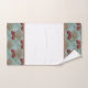 This elegant Bath towel set features a Ponderosa pinecone design. This particular pattern of pinecones comes from a variation (digitally altered) of handmade tile from Oregon tile maker Fay Jones Day. The Pinecones are metallic copper. The background is a textured cool light green. This will be a perfect addition to your Craftsman Bungalow Bathroom. It will also go nicely in a cabin or lodge and make a festive Christmas accent. Look for the other items in this collection.