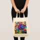 The printing came out very well, better than I had anticipated. The natural color fabric is sturdy with strong seams and comfortable handles. This tote fits easily over my shoulder. As it is filled, the bottom flattens out--very cool! I would buy this product again. This grocery tote holds a lot of groceries! The image quality was very good. The colors were a little darker than I had expected. The darkness may have been due to printing on a natural color fabric rather than on white. The cat design is attractively centered on the tote. The spirit of the design is very lively, just as it appears on the Zazzle website.