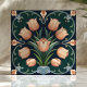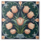 Bring vintage charm to your space with this Arts and Crafts-inspired tile featuring a tulip bouquet in soft peach tones against a deep green background. Delicate scrolling details and a symmetrical design evoke timeless elegance, making it perfect for backsplashes, accent walls, or adding a touch of classic beauty to your décor.