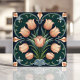 Arts and Crafts Tulip Bouquet on Deep Green Ceramic Tile