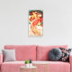 1898 Art Nouveau lithograph poster by Czech artist, Alphonse Mucha (1860-1939). Beautiful woman in a red dress, flowers in her long, flowing, bright red hair, her back arched, looking over bared shoulders, standing on her toes.