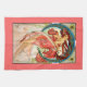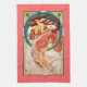 1898 Art Nouveau lithograph poster by Czech artist, Alphonse Mucha (1860-1939). Beautiful woman in a red dress, flowers in her long, flowing, bright red hair, her back arched, looking over bared shoulders, standing on her toes.