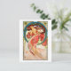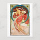 1898 Art Nouveau lithograph poster by Czech artist, Alphonse Mucha (1860-1939). Beautiful woman in a red dress, flowers in her long, flowing, bright red hair, her back arched, looking over bared shoulders, standing on her toes.