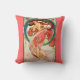 1898 Art Nouveau lithograph poster by Czech artist, Alphonse Mucha (1860-1939). Beautiful woman in a red dress, flowers in her long, flowing, bright red hair, her back arched, looking over bared shoulders, standing on her toes.