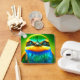 The key chain is made of metal and really sturdy. The flower design is really cheerful. The logo and colors are clear and crisp!