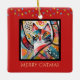 Artsy Cat with Christmas Lights Merry Catmas Red Ceramic Ornament