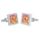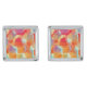 This set of artsy cufflinks features my original abstract art in a watercolor style. They are a little over ½ inch in size and have a generous length to fit most any shirt cuff. These have a silver finish and are square in shape, however you may change the finish and shape as desired. The color tones include orange, turquoise and magenta. A great gift for dad, Father’s Day or a graduation.