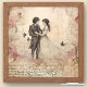 Pretty scrapbook background, hand drawn, rustic artwork with a dating couple in a beatiful nature park.