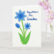 Designed with a simple white background, the card features a stylized bouquet that feels like a quiet gesture of affection ❤️. Three blue blossoms take center stage: one larger seven-petaled flower with gentle shading, a smaller matching bloom to its right, and a curved unopened bud reaching in from the left. Slender bright green stems rise together from two broad emerald leaves at the bottom, as if the flowers are leaning close like companions. The blue and green palette stays soft and fresh, letting the shapes feel calm and inviting rather than busy. In the upper right area, a short message sits in a flowing handwritten style, colored to coordinate with the cool blue flowers. The flower edges have a slightly cut-paper look, adding a tender, crafted touch that pairs nicely with the smooth lettering 🌼. The larger cerulean bloom shows subtle inner shading, and the smaller flower echoes its shape just to the right.