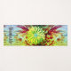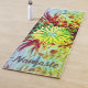 This artsy, abstract painting shades of red, green and blue splattered through out the mat with a decorative green yellow shaded flower with a light green gem in the middle as the centerpiece. Artsy cool vibe with vibrant energy to get you going with your yoga practice. Can be personalized on the bottom with name, logo or text to make it uniquely your own.