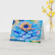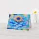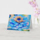 Original artwork featuring my original photograph of a pretty zinnia flower in bloom, styled with a fantasy dream-like technique in aqua blue tones for an artsy appearance, as if in the sky.