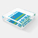 Square paperweight features the blue, red, yellow and white Flag of Aruba with the word ARUBA, beneath the flag in the colors of the flag. Above, a space to personalize with your name, in blue letters, or customize a unique gift. Fun gift for your favorite traveler.