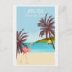 Anyone would love to receive this vintage travel postcard featuring a retro illustration of Flamingo Beach in Aruba!