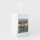 I own a lot of reusable grocery bags, but this one holds its box shape and simply stands up on its own even if there is nothing in it. Its stiffer than your regular reusable bag too, and the material is water resistant. I poured water on the exterior and it didn't penetrate inside to the other side. I'm buying a couple more. Wish I knew how durable these bags were or I would have purchased a few more with my initial order. I also like how it folds and buttons up when not in use, making it easy to put into a handbag or luggage. I haven't used this bag yet, as I purchased it for travel use, like when you're at the airport and need to small sturdy bag to place any airport purchases in, like food, souvenirs etc. I can tell you when you first see this bag, it looks very cheap, but after closer inspection of the material and the seams its a very sturdy reusable bag. I tested it out by putting some really heavy objects inside and I could not observe any stress to the bag at all. Another thing I like about it, is the fact the medium size that this is makes it easy to just carry it in your hand without the bottom of the bag scraping the ground, like most other bags do when you're short. That alone, deserves 5 stars. I just wish there were more colors to choose from! The PDX Airport Carpet printing looks just like the photo, and using this bag during travel might be a conversation piece when/if a native from Oregon happens to see it.