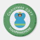 Round magnet for Christmas decor featuring an angel dressed in the flag of Aruba. The angel is found inside a white fractal circle of squiggly squares with a background of green squiggly squares. Add your own text, if you wish. Personalize with a name and customize with the year. Fun stocking stuffer. Honor your Aruban heritage during the holiday season.