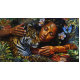 “Arumáya” Jaguar’s Bloom - Women In Amazonia. As she sleeps beside her jaguar guardian, their souls intertwined, she embodies the delicate beauty of a flower nurtured by the wild, her spirit blooming in harmony with the fierce protector of the forest.