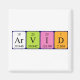 Arvid spelled out as Ar V I D (Argon Vanadium Iodine Deuterium) on a magnet for the scientist in you.