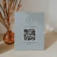 This business QR Code menu pedestal sign features a sage green background and modern sans serif font. Add your own logo and business menu website to create a custom piece for your business.