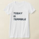 My overall review is that the T-shirt is nice, it fits true to size however the font is significantly smaller than advertised and you can't read it. The printing is unreadable and there is a strain to read it. It does not look like the advertised product. Maybe the shirt color is darker or a larger more visible font should have been used. Photos with and without flash and font is barely legible.