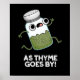 As Thyme Goes By Funny Herb Spice Pun features a cute bottle or thyme running by. Perfect pun gift for family and friends who love cute herb spice thyme puns.