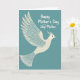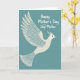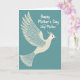 This card shows a large cream-colored bird rising gently against a calm teal background, its wide wings stretched as if gliding toward someone it trusts ❤️. Fine lace-like patterns decorate the bird’s body, adding soft texture that feels like a quiet love note woven into the feathers. Light gray accents trace a few details, keeping the look airy and tender rather than busy. The bird’s small crest and smooth profile give it an elegant, caring presence, like it’s watching over a close friend or partner. In the upper right, a short message appears in cream lettering, angled slightly and kept small so the artwork stays front and center 🌼. The text sits with plenty of open space around it, balancing the composition without crowding the wings. The feather tips are outlined more sharply than the patterned body, making the wings stand out against the teal field.