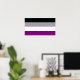The asexual pride movement flag has four horizontal stripes, in black, gray, white and purple. The flag was introduced in 2010.