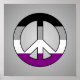 Poster with peace symbol design in colors of asexuality (ace) pride flag; black, gray, white and purple striped pattern design on gray background