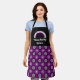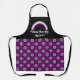 Women's apron with an image of a asexuality pride flag and a rainbow, and repeating seamless flower pattern; black, purple, and gray design on a black background, with a customizable text template for your own name or message