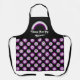 Women's apron with an image of a asexuality pride flag and a rainbow, and repeating seamless flower pattern; black, purple, and gray design on a black background, a dark variant, with a customizable text template for your own name or message