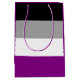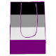 Design with asexuality flag with rainbow stripes of black, gray, white and purple; ace pride design