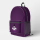 Backpack with fleur-de-lis (fleur-de-lys or lily flower) symbol with rainbow stripes of black, gray, white and purple from asexuality flag; ace pride design on purple background