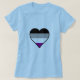 Ladies Ringer T-Shirt with heart design in colors of asexuality; black, gray, white and purple, stripes pride flag, rainbow love design