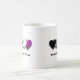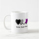 Customizable Classic White Mug with hearts design in colors of asexuality; black, gray, white and purple, stripes pride flag, rainbow love design