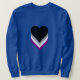 Basic Sweatshirt with hearts design in colors of asexuality; black, gray, white and purple, stripes pride flag, rainbow love design