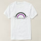 Basic T-Shirt with asexuality rainbow stripes of black, gray, white and purple; ace pride flag design, "These Are My Colors" template text, by pinkbrickroad