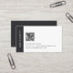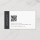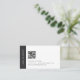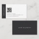 Eyecatching modern design has a minimalist feel with a chic pop of color. Business cards feature your name along the left side, with three lines of contact information to the right, along with a customizable QR code. Cards reverse to solid soft ash black with your name or choice of custom text centered in modern white lettering.