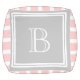 A fun girly striped pouf in sweet shades of Ash Grey, Baby Pink and white. Personalize with your choice of initial.