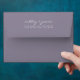 The Ash Purple Modern Script Wedding Return Address envelope features soft, muted purple tones paired with clean, airy script for a refined and contemporary look. This minimalist design adds a graceful finishing touch to wedding invitations, RSVP envelopes, thank-you cards, and formal correspondence. Easily personalize with your names and address.