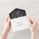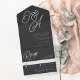 A beautiful typography based monogram wedding invitation featuring your initials in oversized script lettering at the top, in tone on tone shades for a watermark effect. Personalize with your wedding details in classic serif lettering aligned at the lower right. Our Ash colorway makes a classic statement with crisp white lettering on a soft black background. Attached RSVP card and folding style makes this all-in-one invitation an appealing choice.