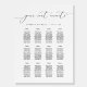 This seating chart features an elegant calligraphy script font and modern minimalist design. Its simple table layout makes this seating chart easy to edit and perfect for any occasion. Edit most wording to meet the needs of your event and change all colors to mach your color palette.