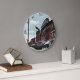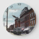 Nostalgia Postcard Clocks by Terri Meyer “Turning Back the Hands of Time” Combining history and function, this clock was designed from a vintage postcard by Artist Terri Meyer. Notes written on the back side of the card describe moments of personal information and the postmark validates the location and time frame of the postcard. This clock depicts downtown Ashland, Ohio at Main Street in 1908. With a view of historic trolley that once ran through the town.