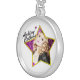Silver look necklace featuring Ashley Collins star picture and logo.