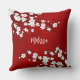 Asia Floral White Cherry Blossom Red Add Name Throw Pillow