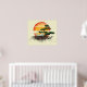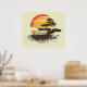 Asian bonsai and sun custom print poster, featuring a bonsai, scrolls and swirls and a large sun in the background.