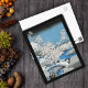 This vintage image has an Asian landscape scene. There is a bridge with people and snow covered trees and islands. The water and sky is a vibrant, pretty blue. The card has a black border. See my store Art by MAR for matching products with this design.