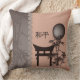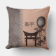 Asian brown Torii bamboo moon digital art Throw Pillow