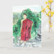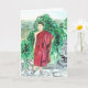 Watercolor painting of a Buddhist monk in red robes standing on the template rocks against a jungle forest background. Personalize this product with your own text and images using the "Customize It" button.